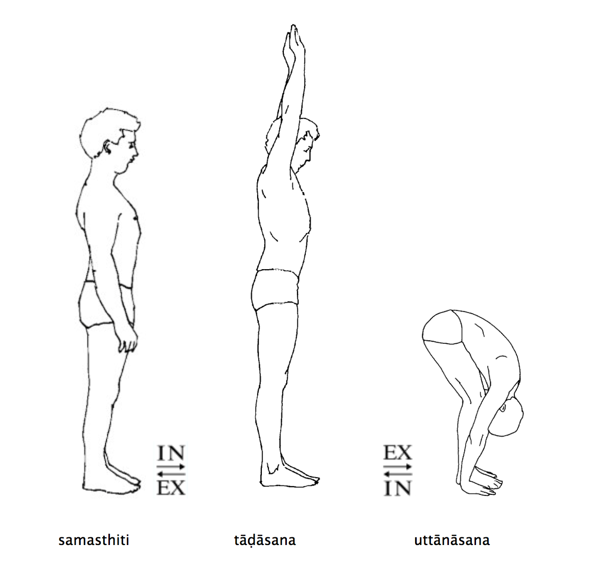 站上瑜珈墊,別急,就只是好好站著,感覺自己的兩隻腳掌,兩條腿,感覺自己的軀幹,輕輕呼吸一會兒,再接著幾次稍微加點力道的深呼吸。慢慢覺得舒服了,就讓兩條手臂跟著呼吸的節奏上下擺動。感覺還不壞嘛?那就繼續讓整個身體一起動,前彎下來,再慢慢站起來。