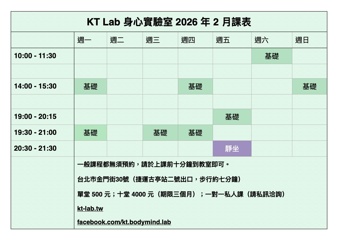 2026 年 2 月課表