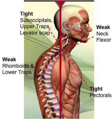 這些太緊和太弱的肌群在肢體上半部形成一組交叉線,因此而稱之為上交叉症候群。