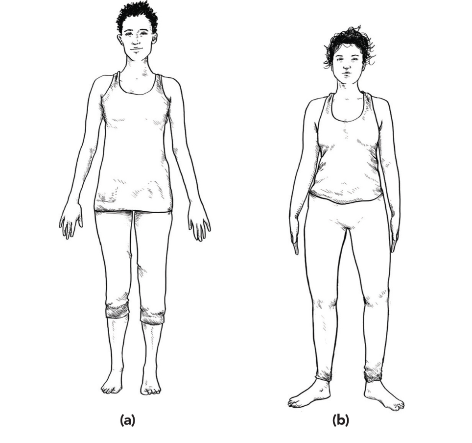 這種「賺再多都不滿足」的心態,讓我們看不清楚自己到底想要什麼,也看不清楚具體的現實。舉個例子來說,每個人天生的生理結構都有差異,有的人容易站得直,有的人容易外八,像是下圖。