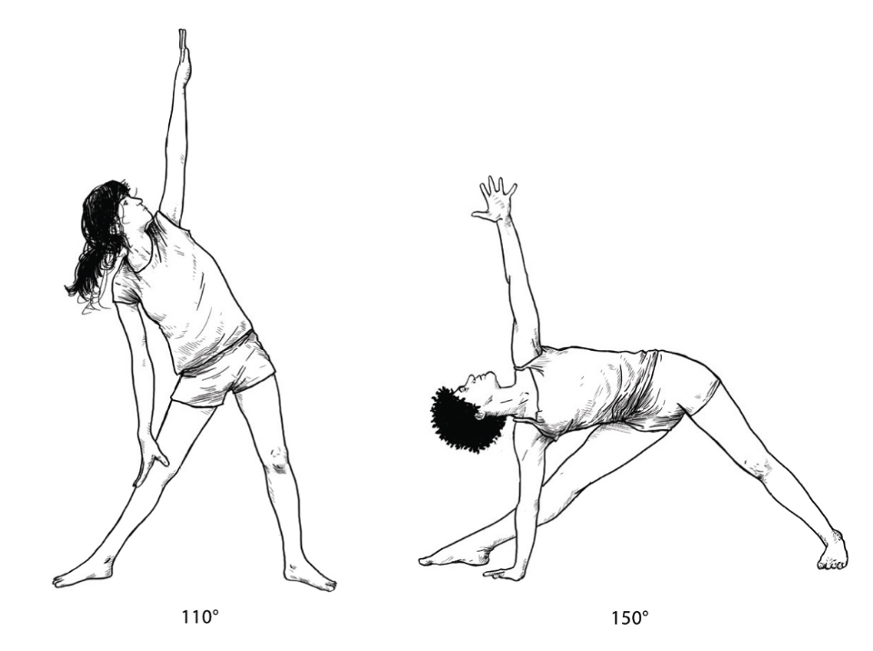 看清楚這樣的具體現實,我們還會認為,三角式裡手放到地上比較「厲害」、比較「到位」嗎?難道我們會說,「哇,你的股骨頸/股骨幹的角度竟然那麼大,真是厲害啊!」(話說回來,我們的確一天到晚在比較這些先天生理結構,比較每個家庭的不同社經地位。)